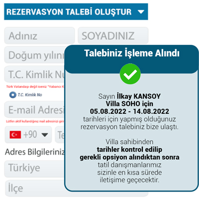 Seçtiğiniz villanın tarihlerinin müsaitliğini kontrol edip rezervasyon talebi oluşturun